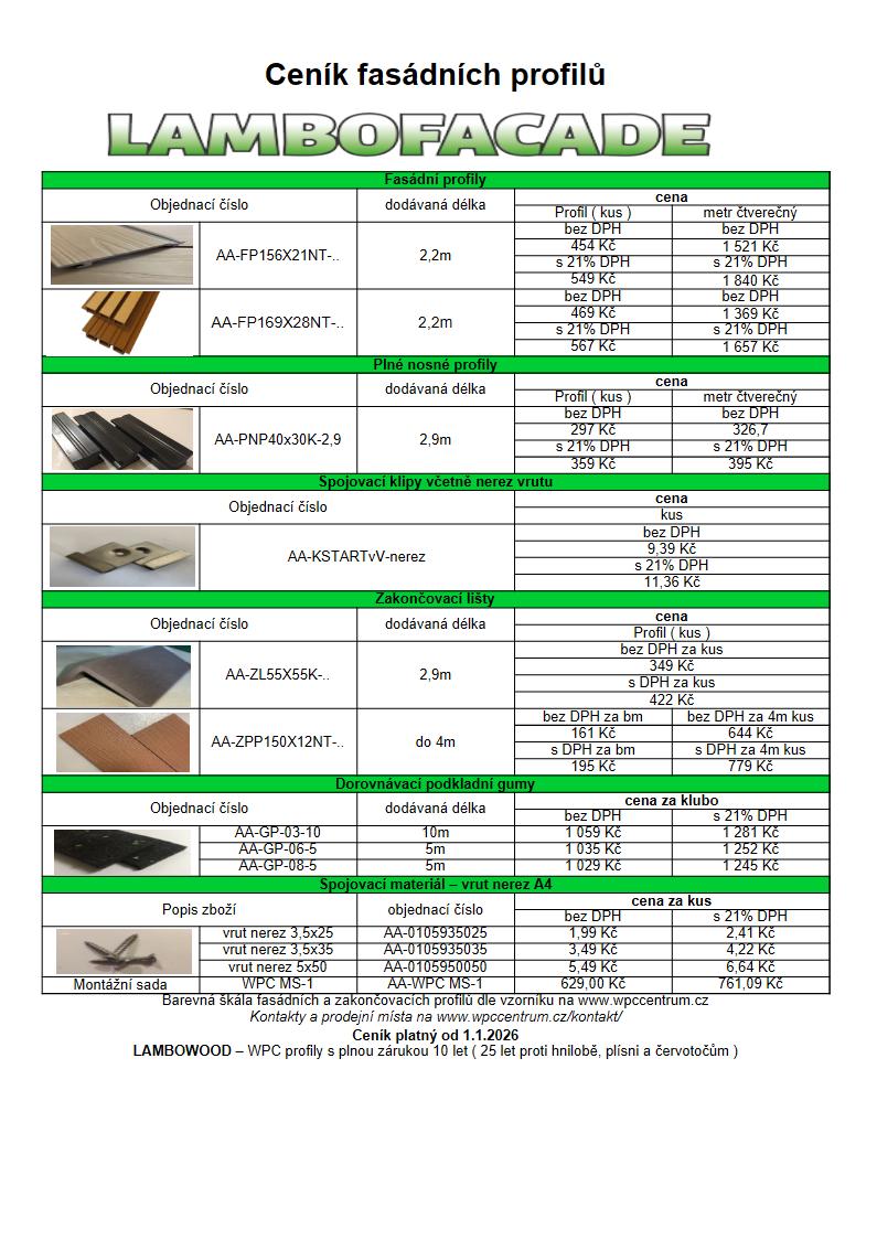 Ceník WPC fasádních profilů Lambofacade od 1.1.2026