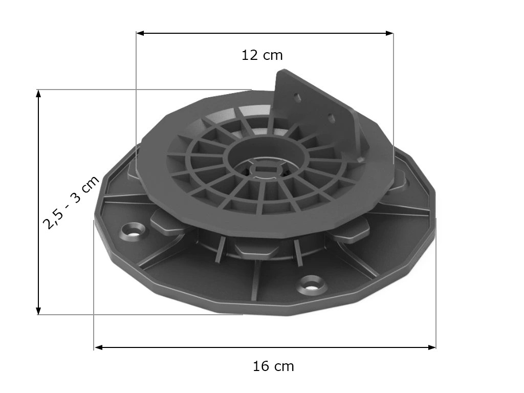 Stavitelný terč pod WPC terasy se samonivelační hlavou
