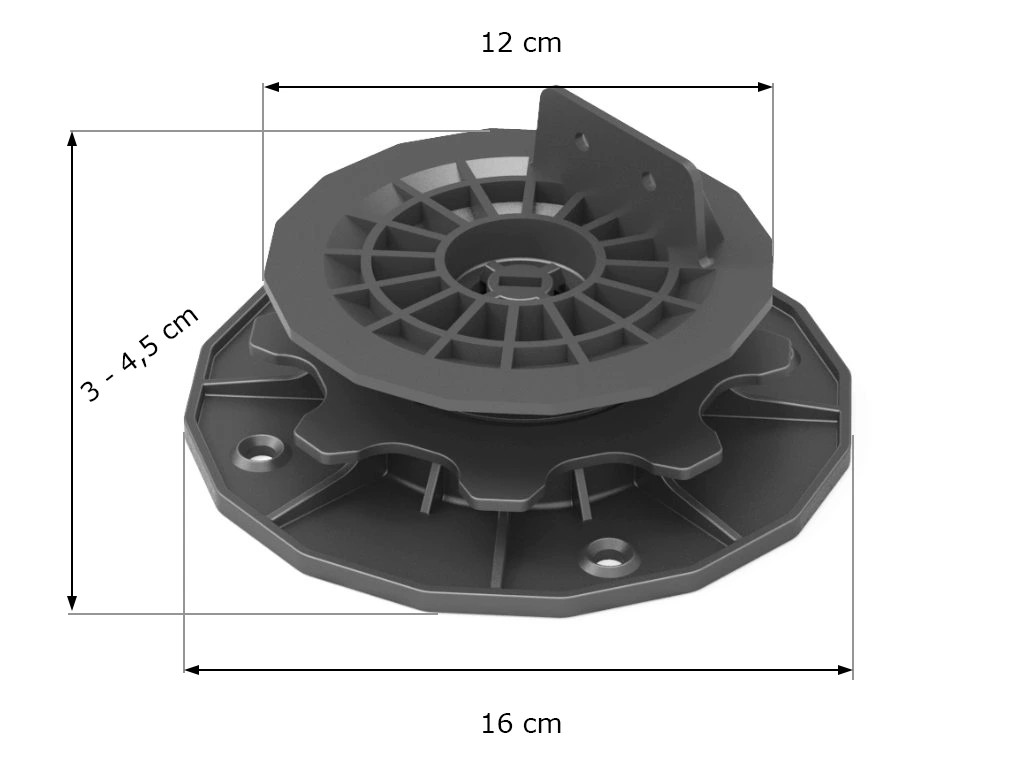 Stavitelný terč pod WPC terasy se samonivelační hlavou