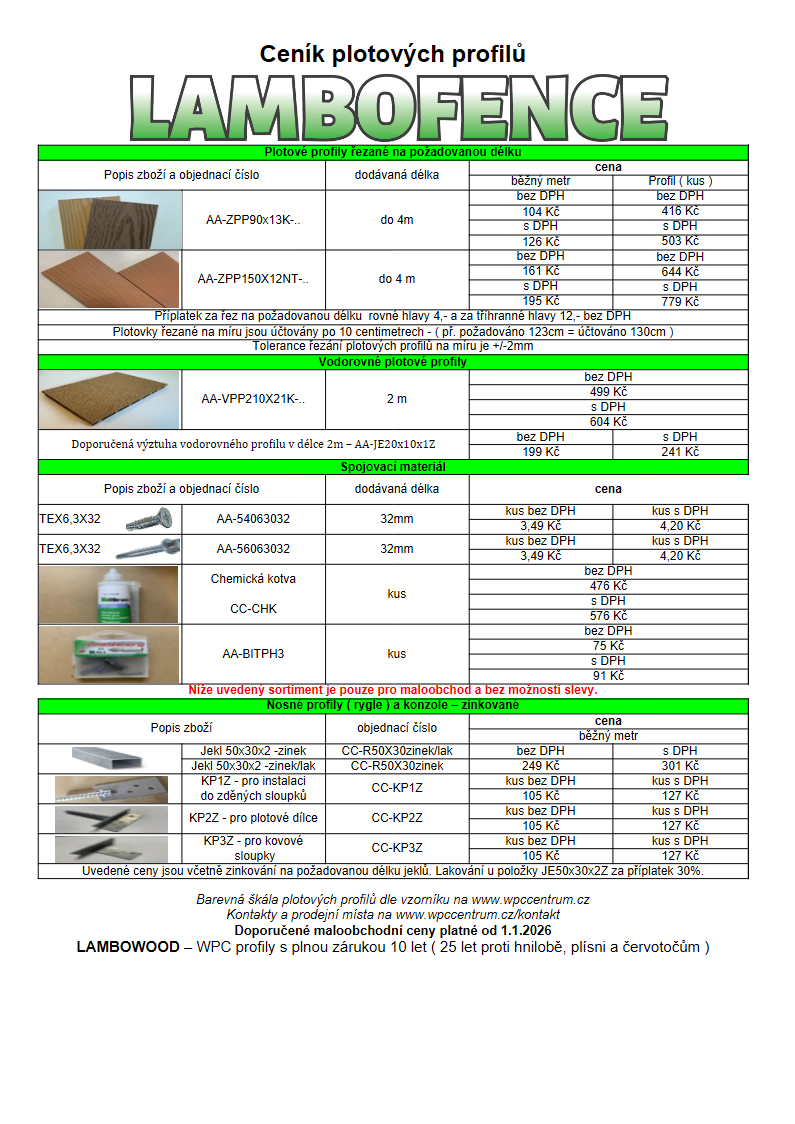 Ceník WPC plotových profilů Lambofence od 1.1.2026